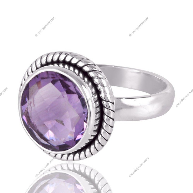 Elevate your elegance with this stunning amethyst sterling silver ring β¨. The rich violet hues of the faceted amethyst stone captivate the eye, exuding mystery and charm. Crafted with exquisite 925 sterling silver, the detailed rope-style bezel setting adds a vintage-inspired allure, making this ring a timeless treasure in any jewelry collection.