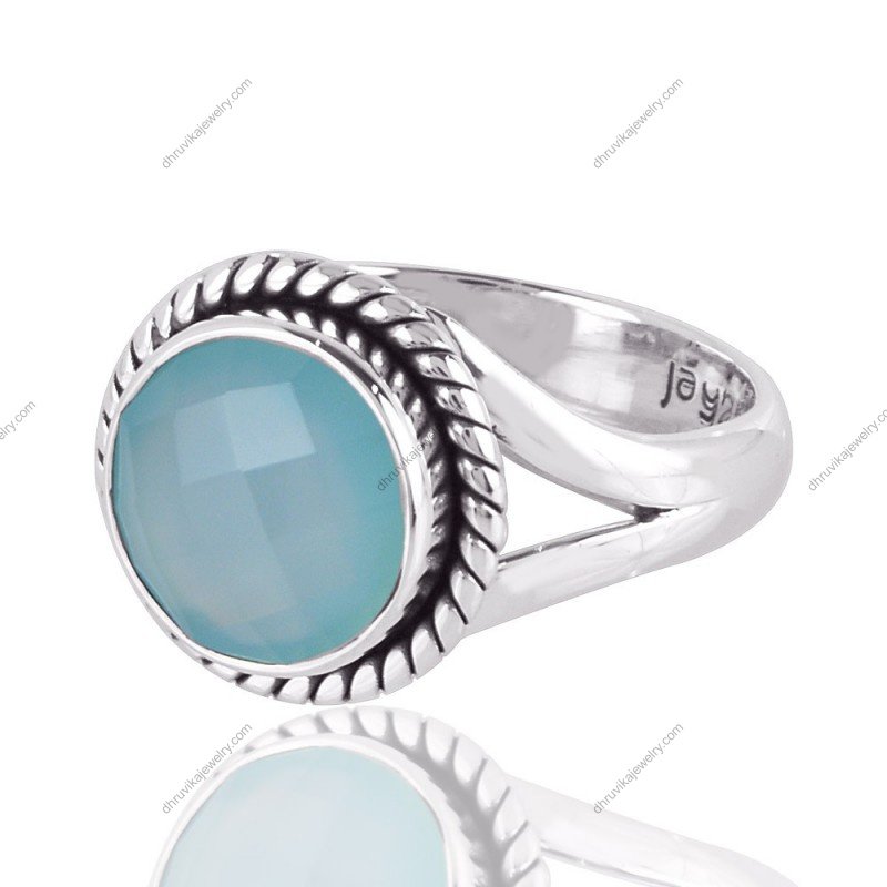 Sterling Silver Blue Chalcedony Vintage-Inspired Ring for Women